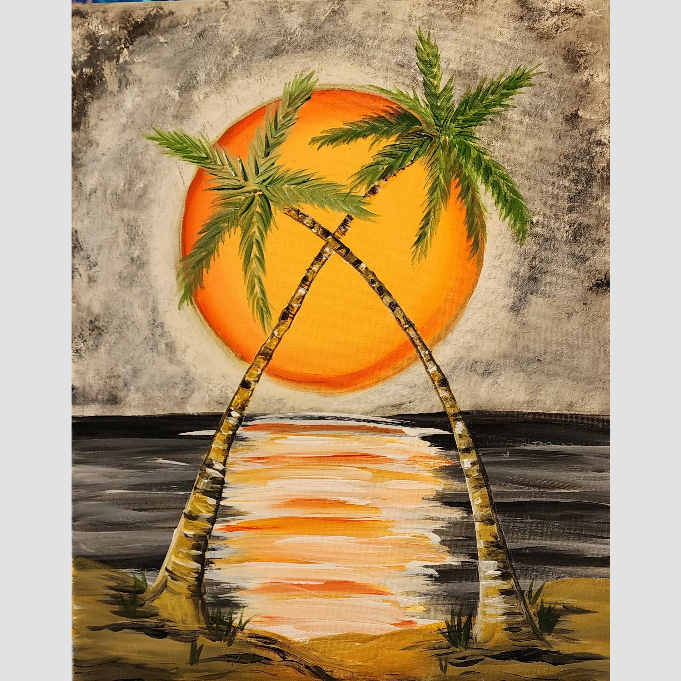 Join us Mon. 04/27 at 7pm at Gator's Shack Restaurant in Loxahatchee as we eat, drink, and paint step-by-step through the creation process of this beautiful painting! During this event we will be painting our ‘Evening Palms’ on a 20x16 inch canvas. The event costs $30 per person.